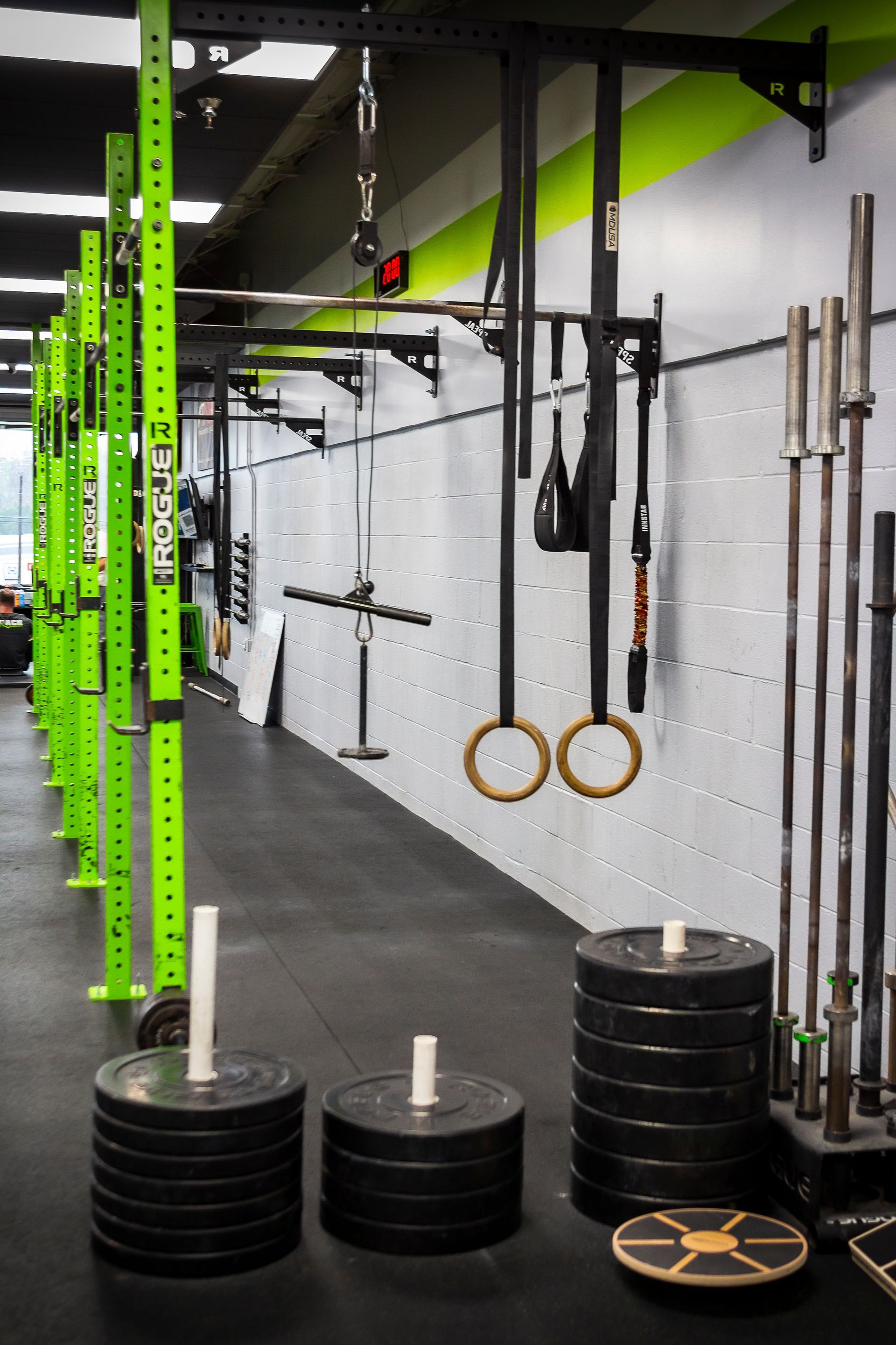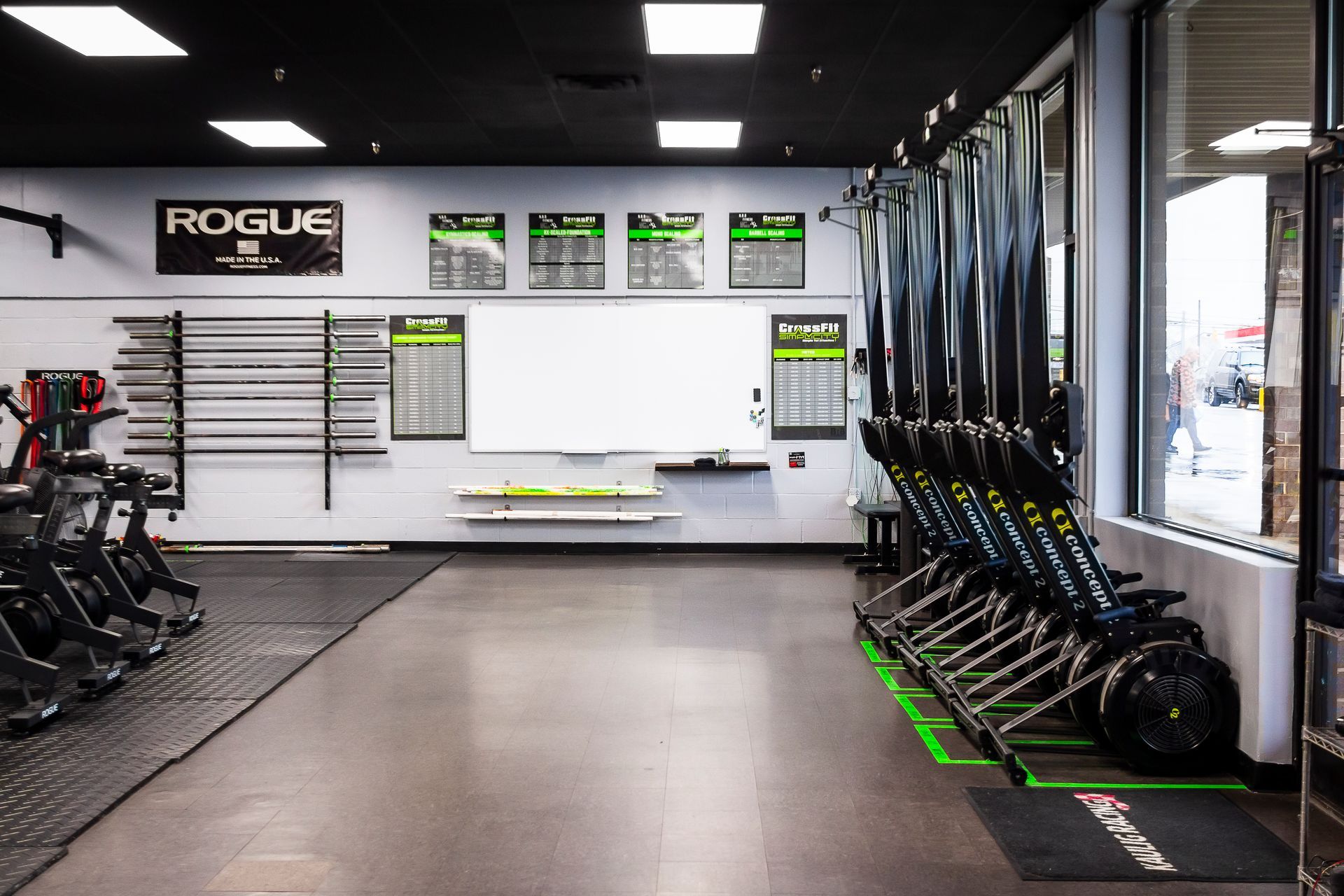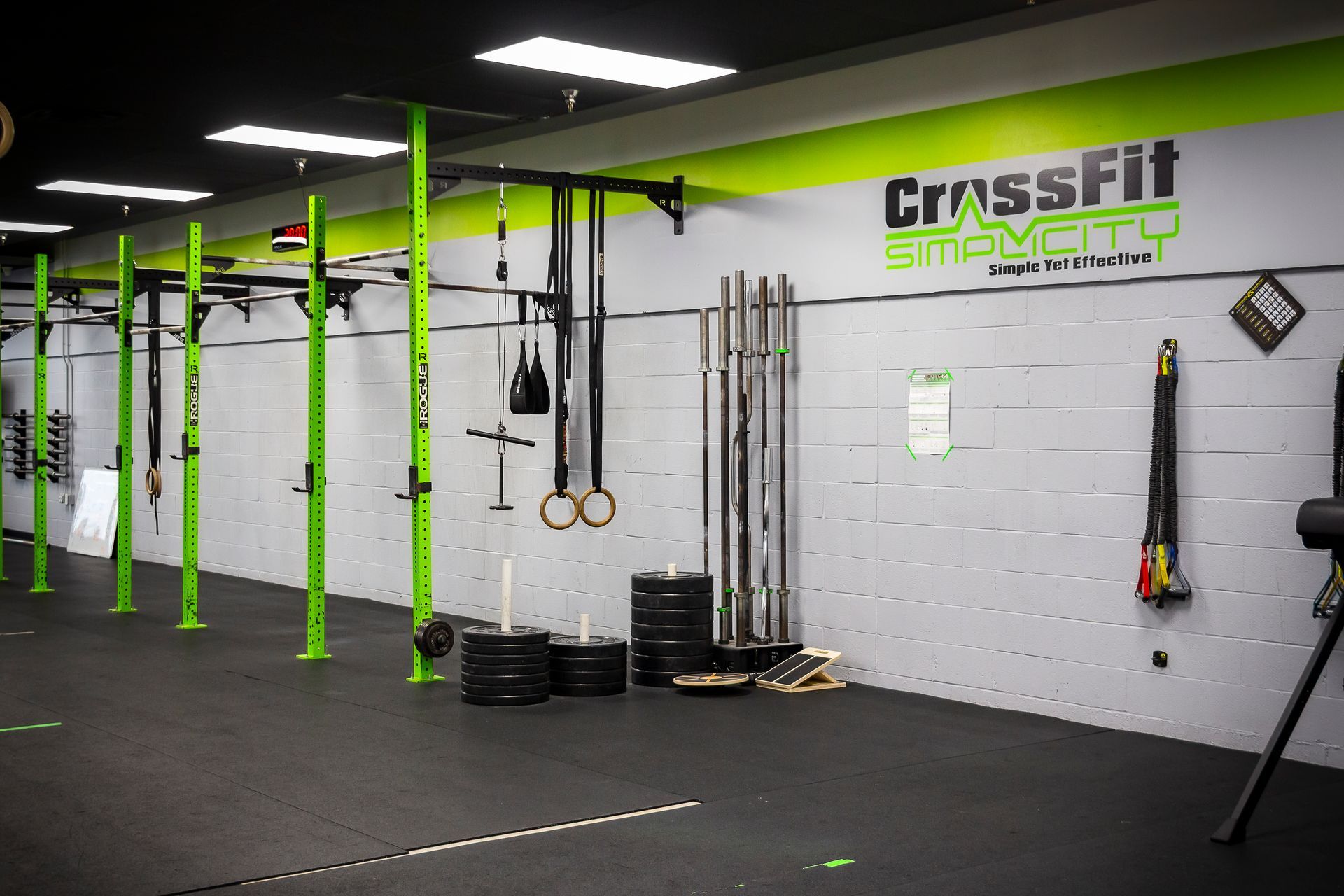 CrossFit Simplicity is truly the premier CrossFit gym in the area! We want to provide you with a first class facility and offer the most value possible! We have done this by building a gym that is clean, spacious, orderly, and filled with all sorts of amenities to enhance your experience. We have 5,000sqft of rubber platform for classes and open gym use. The entire facility is outfitted by Rogue Fitness equipment, including rowers, bikes, and ski ergs. Other amenities include a shower, free towel service to keep the sweat at bay while you train, water fountain and bottle filling station to keep you hydrated, and much more! Check out these pictures to see more or contact us to schedule a visit!